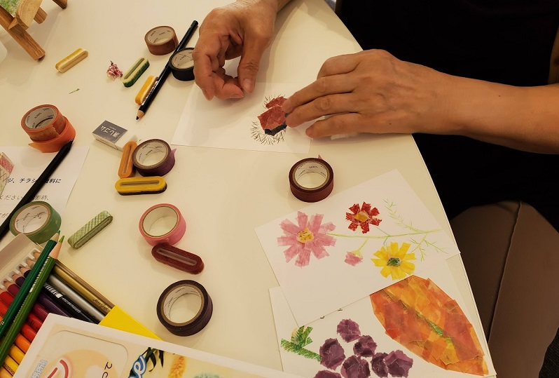 学生さんと一緒に皆さん夢中でマスキングテープをちぎって貼って楽しんでました!