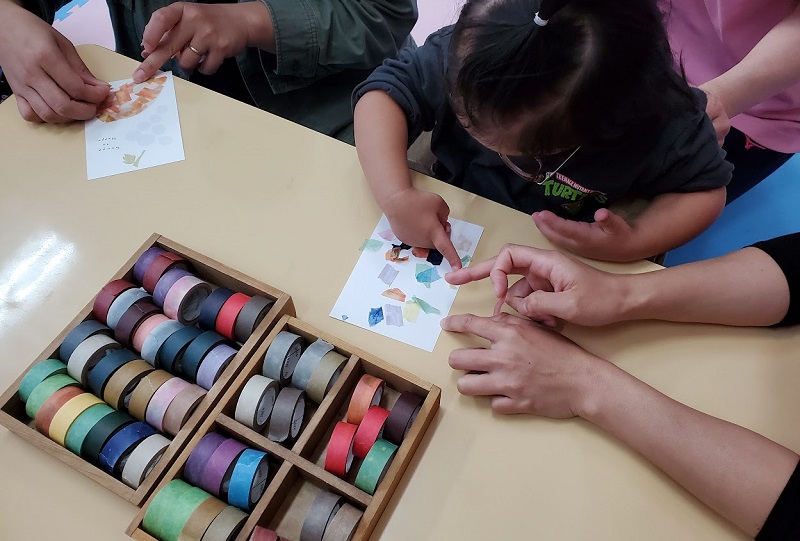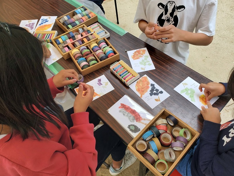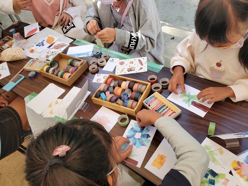 子供たちも夢中でちぎって貼って、 news 2022.10.282022.10.24 プレワークとして、療育園さんと児童養護施設さんにおじゃまして今回のマステワークショップを子供達と一緒にさせていただきました! たくさんのいろんな色合いのマスキングテープに、子供達の目は輝いて、ちぎり始めるとワクワクが止まらない!!貼って貼って、伝えたい想いがあふれているよう! 好きな食べ物、、マグロのお寿司やマスカット、チーズハンバーグもありました!好きなゲームや景色も、、、上手すぎる! 子供達もいい具合にまざってましたね~!この作品たちを次回の追手門学院大学ふらっとカフェで伝えてまざっていきます!!
