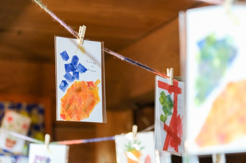 また不思議なことに、ワークショップした場所も年齢も全然違う知らない人同士の作品が通じ合っているかのように並べるとペアのような作品もありました!面白い!